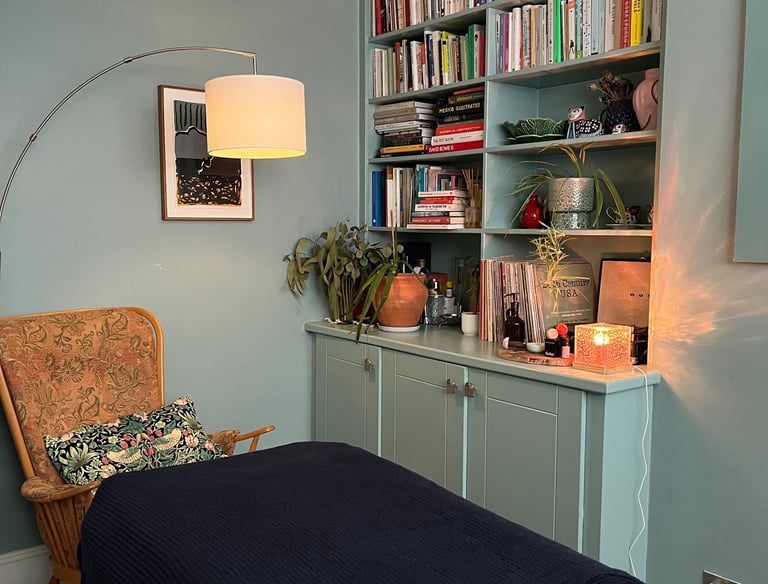 I offer all my treatments in my home studio in South Norwood, with a calm unhurried atmosphere. Babies welcomed for post-natal treatments.